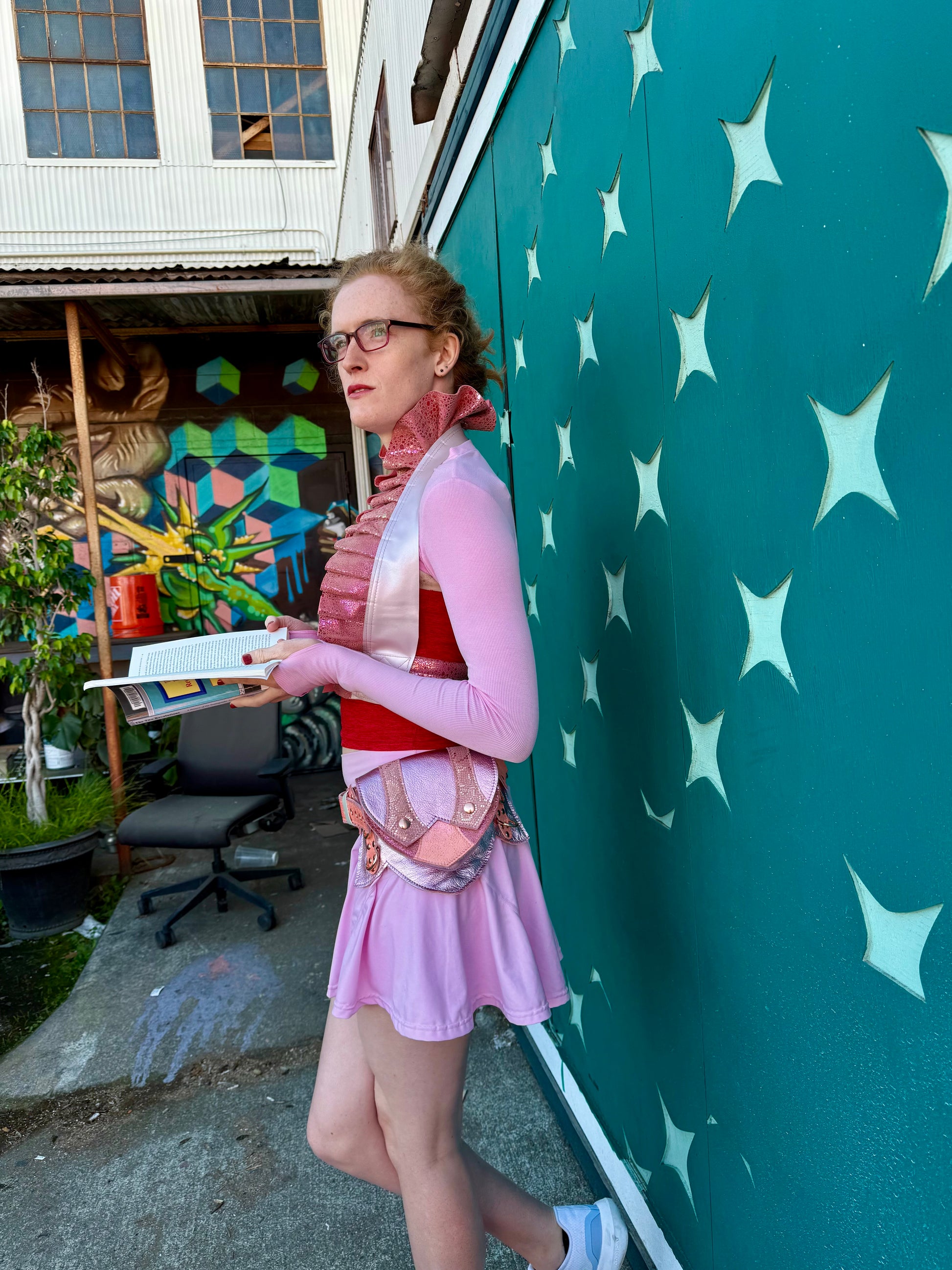 The Just Too Good colorway features four different metallic and holographic pink leathers all brought together with rose gold hardware for a harmonious homage to Glinda the Good's signature hue.