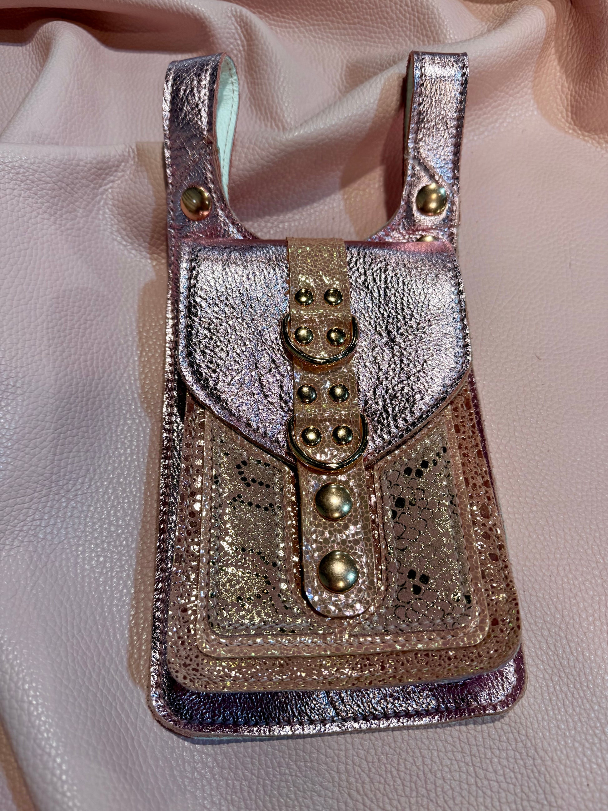 Each of the eight thigh bags made for this collection feature the same four leathers as the matching Regal belts, but in different arrangements.